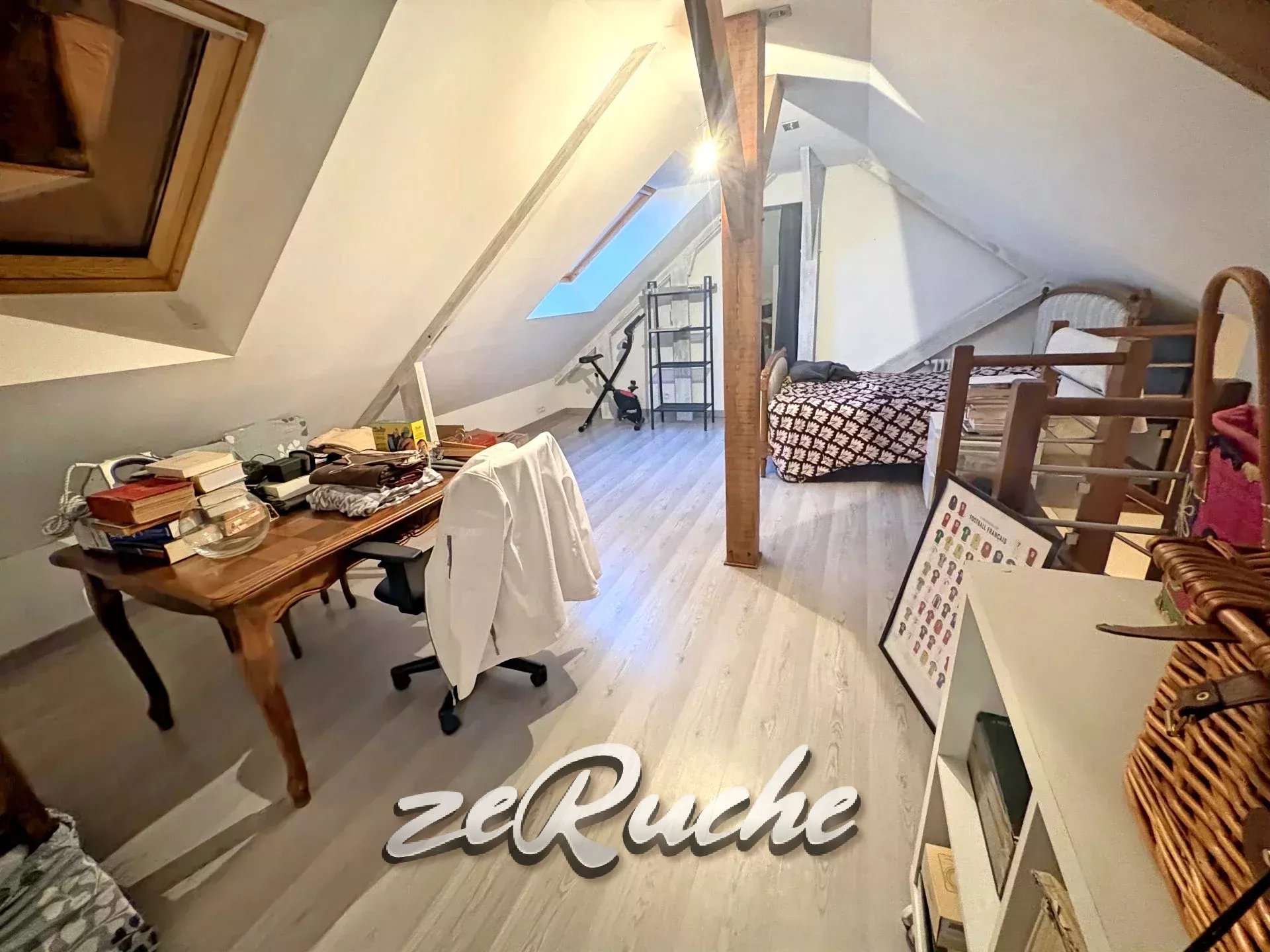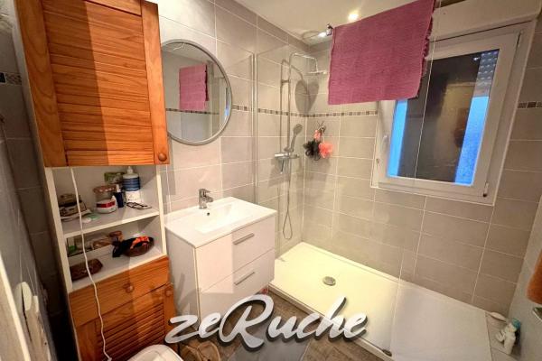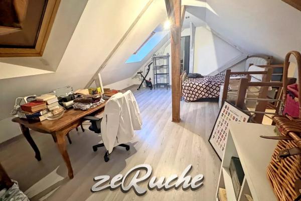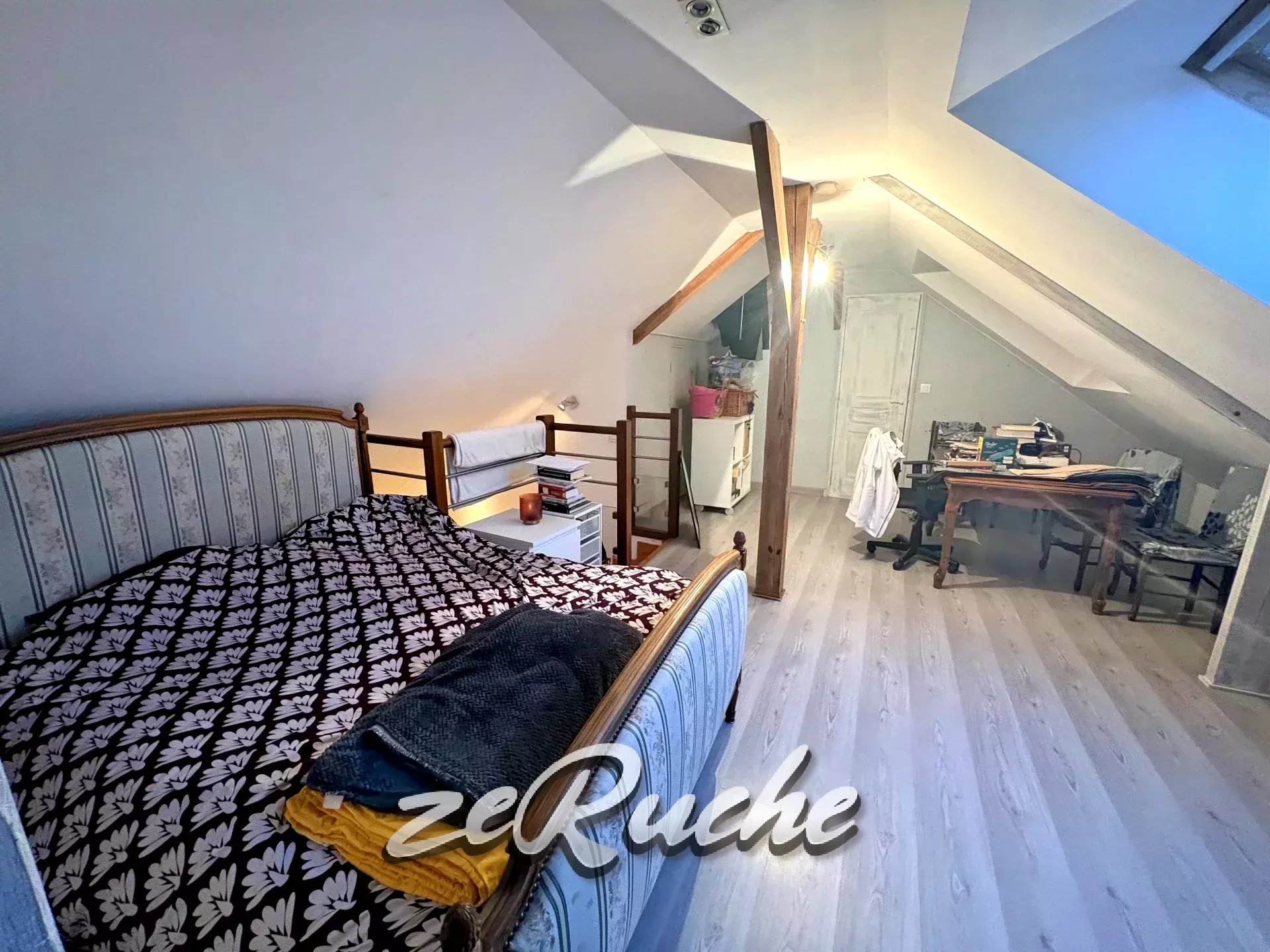 A l'étage, une chambre en mezzanine avec placards, une salle d'eau et un WC.